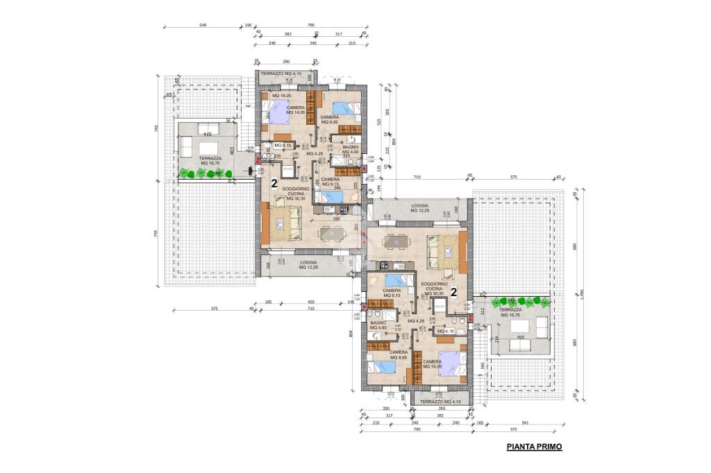 Il progetto prevede due differenti configurazioni interne, con possibilità di realizzare soluzioni trilocali o quadrilocali, entrambe dotate di due bagni, così da adattarsi perfettamente alle necessità di coppie, famiglie o di chi desidera ambienti più ampi e versatili.