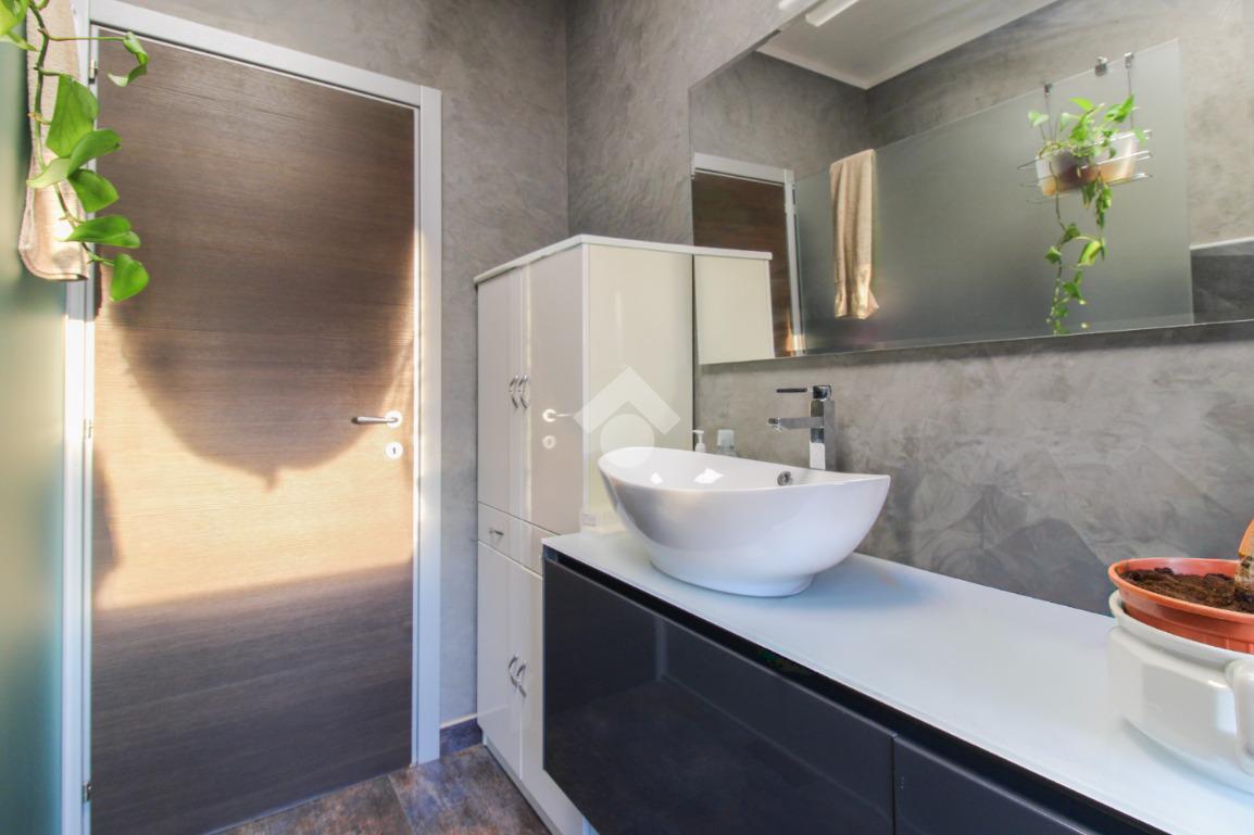 Proseguendo troviamo il bagno finestrato, moderno e curato nei dettagli, completo di doccia e sanitari, mentre sulla sinistra si apre un ampio soggiorno, particolarmente luminoso, collegato alla cucina in un ambiente accogliente e ben organizzato.