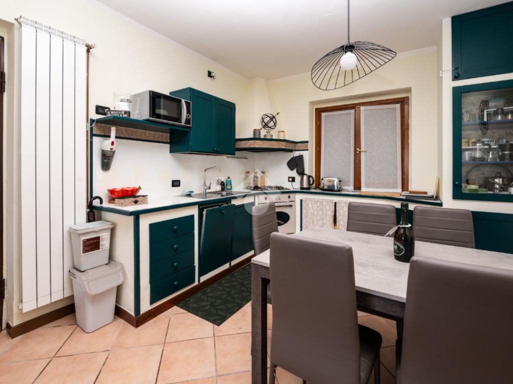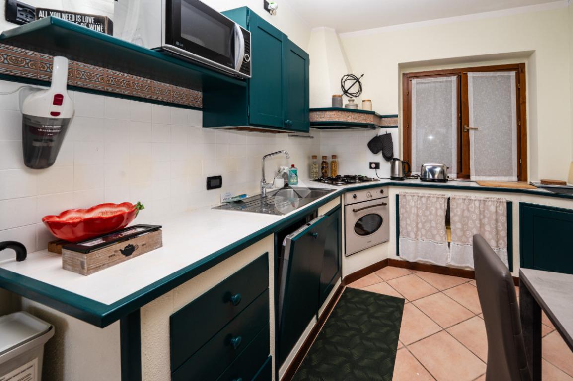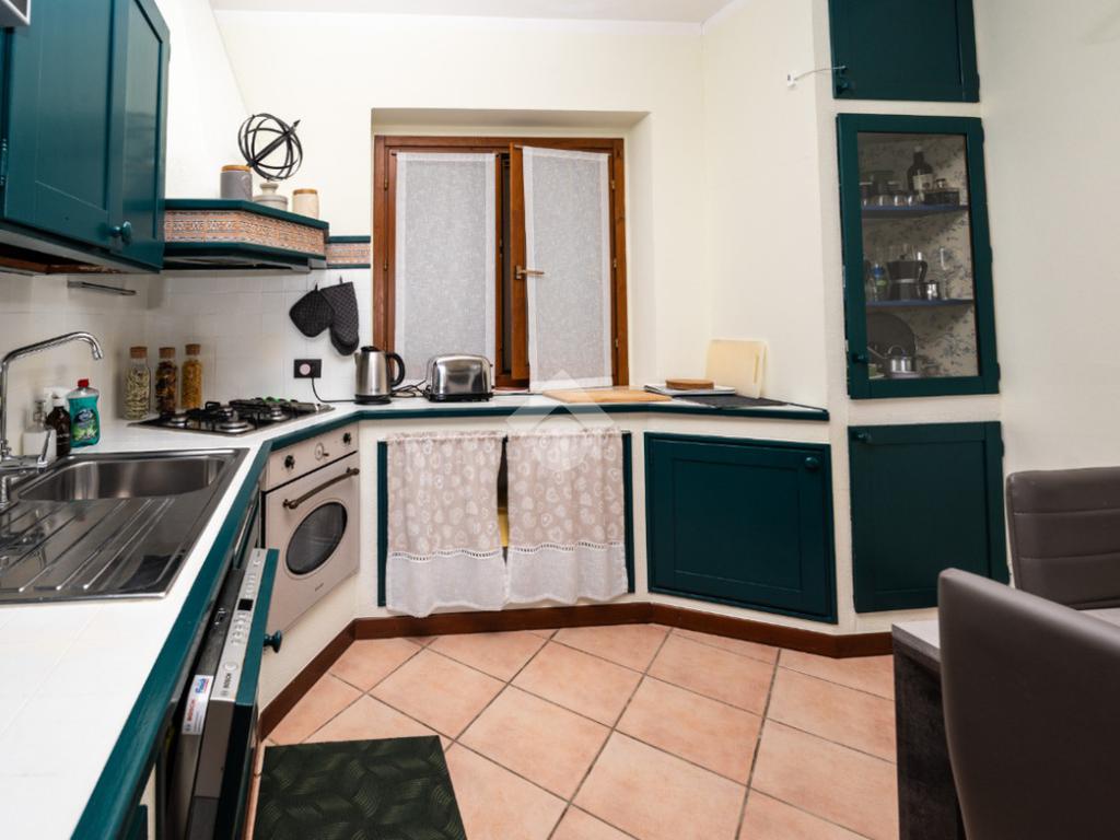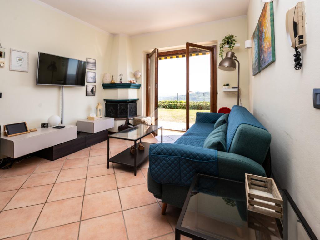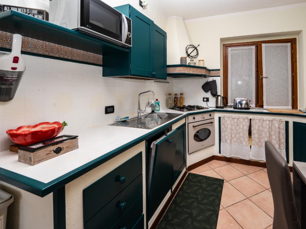 L’ingresso conduce alla zona giorno, composta da un soggiorno spazioso con cucina a vista, un ambiente accogliente e ben organizzato, pensato per la quotidianità, anch’esso valorizzato dalla piacevole vista lago.