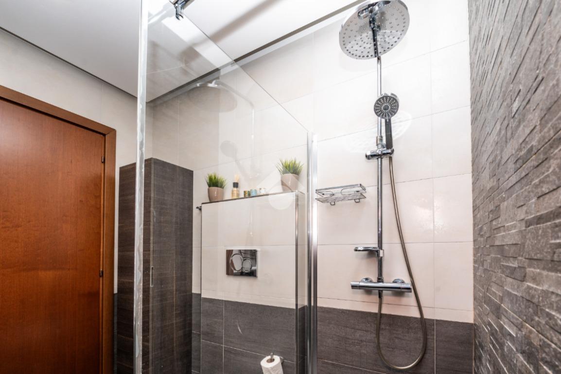 Una porta separa in modo funzionale la zona giorno dalla zona notte, dove troviamo due camere matrimoniali di generose dimensioni e un bagno moderno, recentemente ristrutturato. Si specifica che l’immobile è dotato di un cavedio, utilizzato come locale lavanderia e pratico ripostiglio.